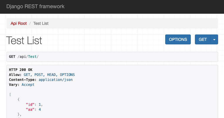 rest api로 Test 모델에 임의의 데이터 items를 넣으려고 한다