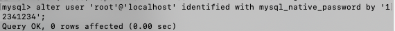 ALTER USER 'root'@'localhost' IDENTIFIED WITH mysql_native_password BY '12341234';