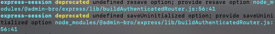 express-session deprecated undefined saveUninitialized option; provide saveUninitialized option node_modules/@admin-bro/express/lib/buildAuthenticatedRouter.js:56:41