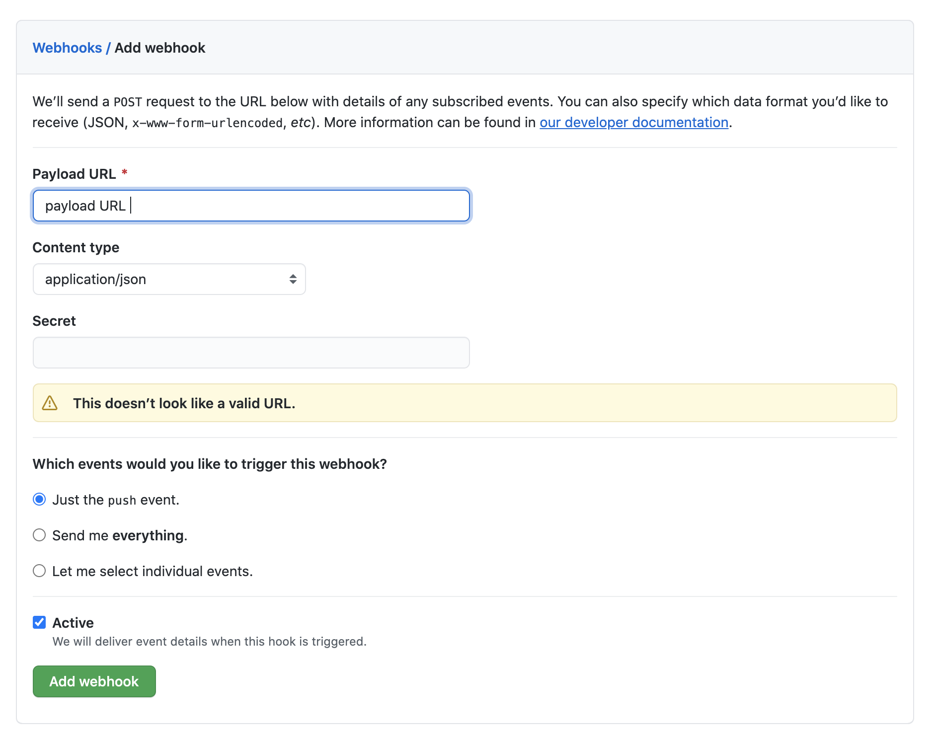 Repository -> Settings -> Webhooks