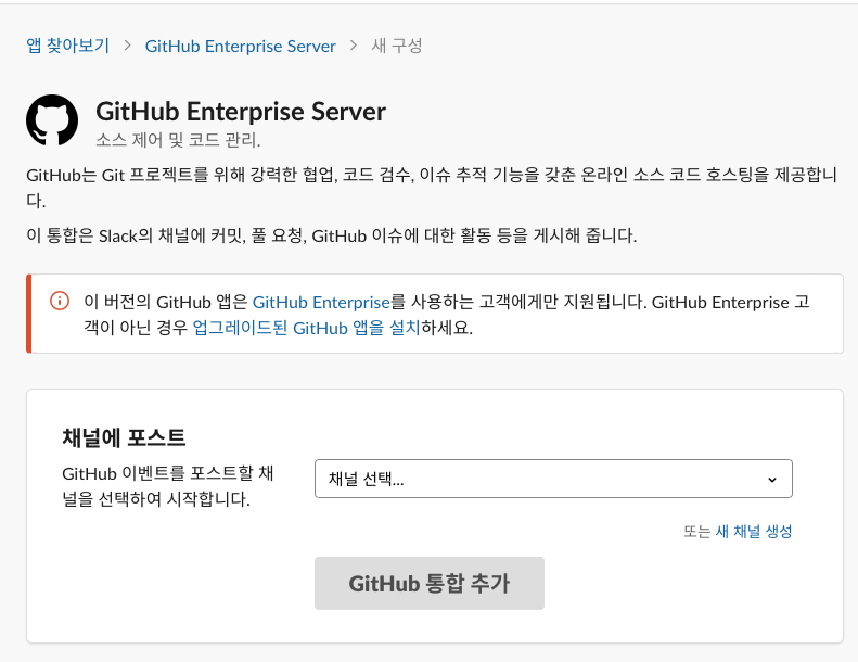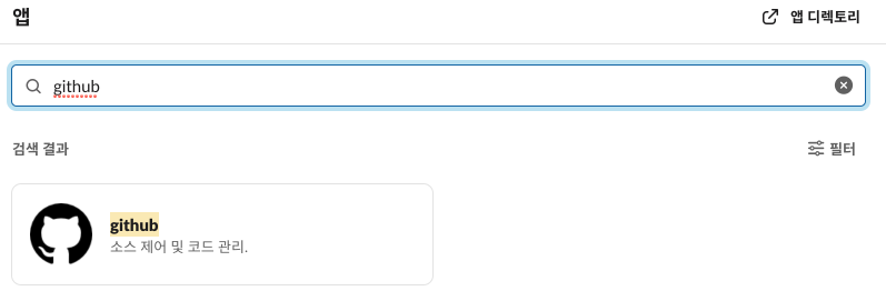 앱->앱 추가->Github 검색 후 추가