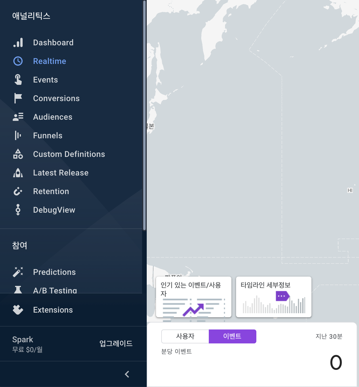 ⑥ Analytics=>Realtime에서 이벤트 확인하기