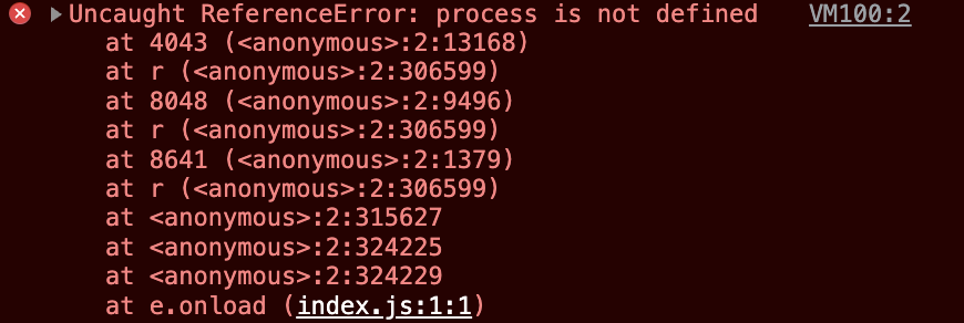 명령어를 실행했지만 아래와 같이 process is not defined 에러가 발생하면서 웹 화면이 안 보이는 경우가 있다