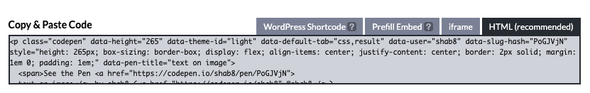 펜 하단에 Embed 클릭 => HTML 코드 가져오기