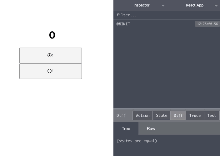 Chrome에서 Redux 스토어를 확인해 보면 counter에 { number: 0 }로 initialState가 들어가 있다