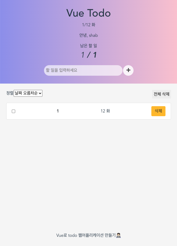 Vue를 사용해서 간단하게 Todo 웹 어플리케이션을 만들고 있는데