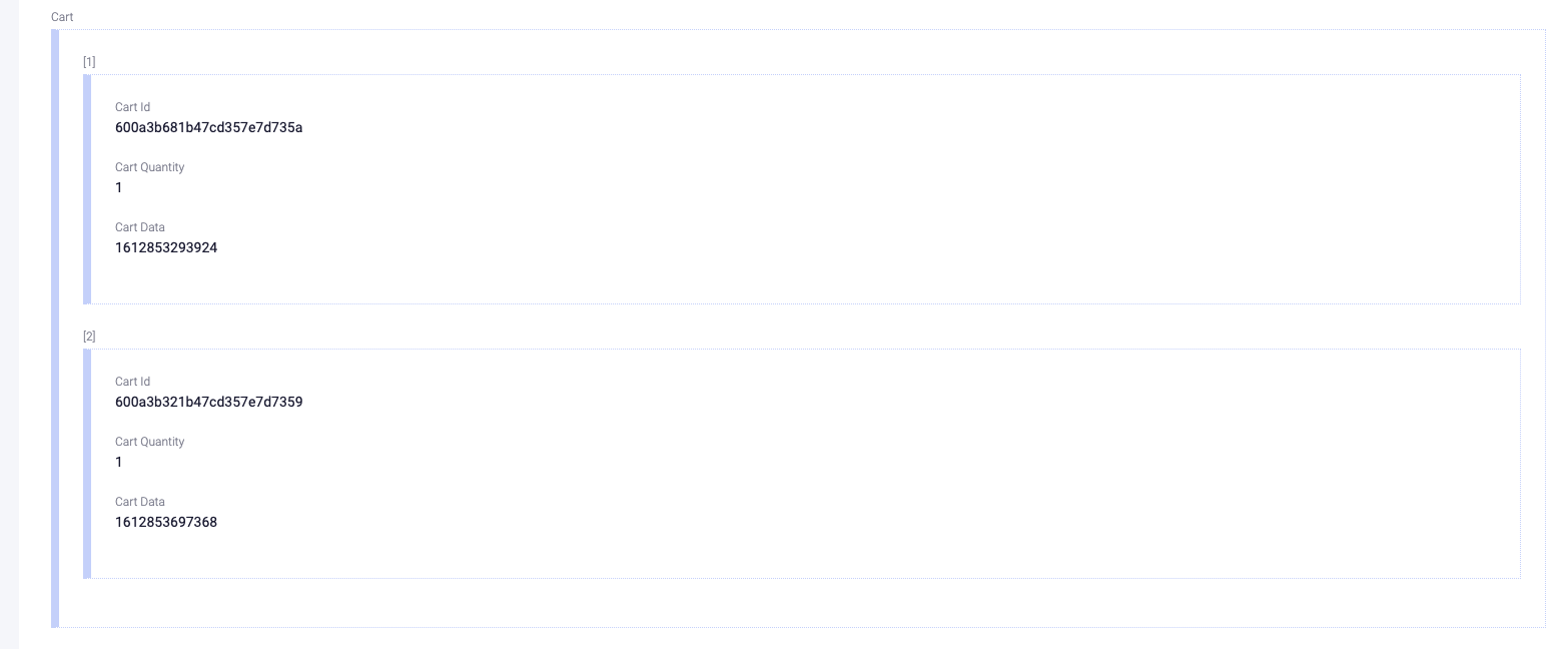 이렇게 아까는 비어 있던 Cart Array에 데이터가 잘 들어온다