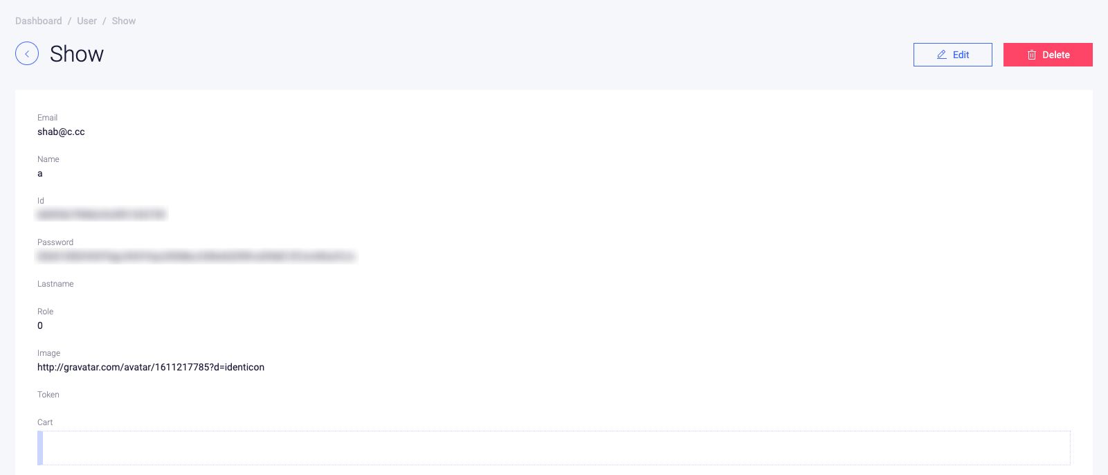 아래 이미지에서처럼 adminbro 관리자 대시보드에서는 cart array에 데이터가 보이지 않는다