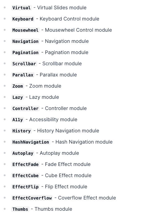 navigation, pagination 외에도 다른 모듈들이 많다