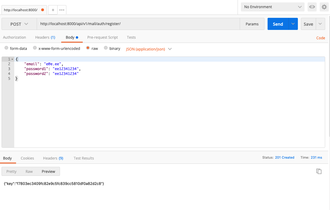 SEND 버튼을 클릭하면 key를 얻을 수 있다