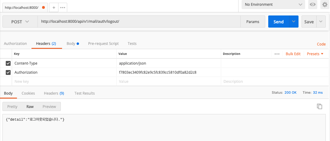 넣은 후 Send 버튼을 클릭하면 로그아웃 된다