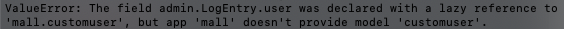 ValueError: The field admin.LogEntry.user was declared with a lazy reference